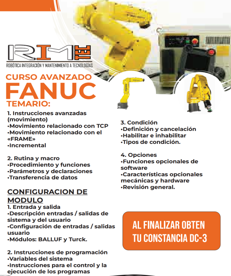 Garantía obtenida. El participante será capaz de configurar y poner en marcha un robot